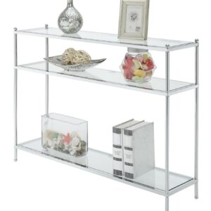 Convenience Concepts Royal Crest 3 Tier 54 inch Glass Console Table, Clear Glass/Chrome