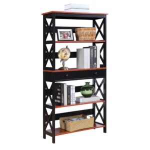 Convenience Concepts Oxford Five-Tier Bookcase in Cherry and Black Wood Finish