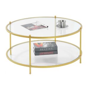 Convenience Concepts Royal Crest 2 Tier Round Glass Coffee Table-Finish:Clear Glass/Gold