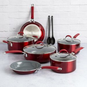 Cooking Light Allure 12 Piece Non-Stick Ceramic Cookware Set, Red