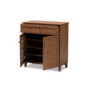 Coolidge Modern and Contemporary Walnut Finished 4-Shelf Wood Shoe Storage Cabinet with Drawer