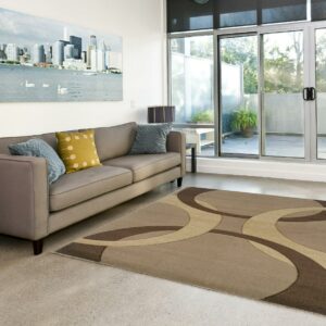 Corfu Spheres Tan Area Rug 5×7.7 100% Heat Set Frieze Yarn Contemporary Style
