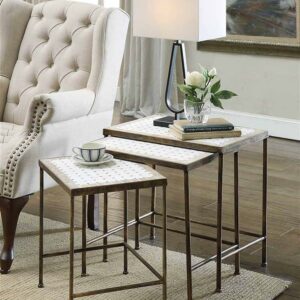 4D Concepts Travertine Top Metal Magazine End Table in Rustic Bronze