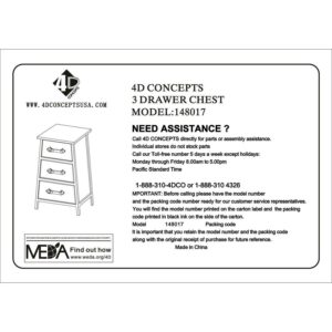 4D Concepts Urban Collection 3 Drawer Chest With Black And Grey Finish 148017