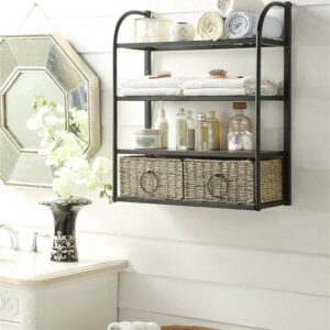 4D Concepts Windsor 2 Wicker Basket Metal Wall Shelf in Natural and Black