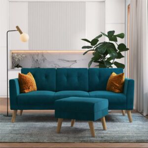 CosmoLiving Gloria Upholstered Sofa Sectional with Detachable Ottoman and Reversible Design, Blue Velvet