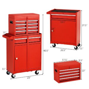 Costway 2 in 1 Tool Chest & Cabinet with 5 Sliding Drawers Rolling Garage Organizer Red