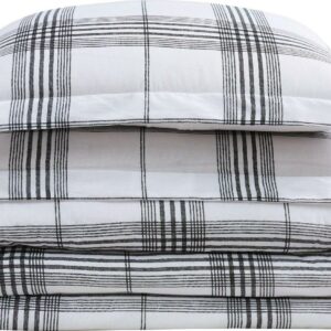 Cottage Classics White and Brown, Cotton Comforters, Full/Queen, (3 Counts)
