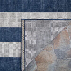 Couristan Afuera Yacht Club 5’3″ x 7’6″ Midnight Blue and Ivory Stripe Outdoor Rectangle Rug