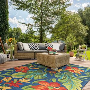 Couristan Recife Veranda Indoor / Outdoor Area Rug, Champagne- Blue, 5’3″ x 7’6″