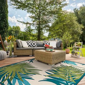 Couristan Covington Jungle Leaves Indoor/Outdoor Area Rug, 5’6″ x 8′, Ivory-Forest Green