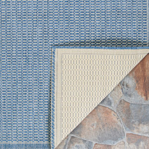 Couristan Recife Saddle Stitch Indoor /Outdoor Area Rug, Champagne- Blue, 5’3″ x 7’6″