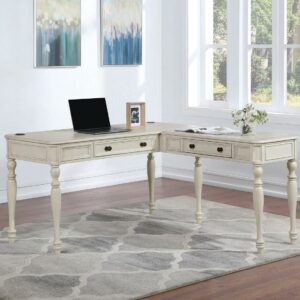 Country Meadows L-Shape Engineered Wood Desk with Power in Antique White