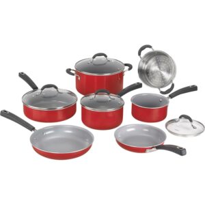 Cuisinart Ceramica XT 11-Piece Nonstick Ceramic Cookware Set with Steamer Insert, Red