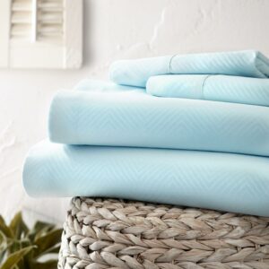 DDI 1941767 California King Premium Embossed Chevron 4 Piece Sheet Set – Aqua Case of 12