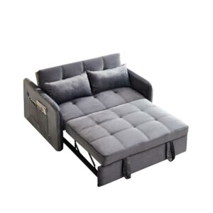 DEALTOPS 55.5″ Pull Out Loveseats Sleeper Sofa Bed with USB Ports and Side Pockets, Gray