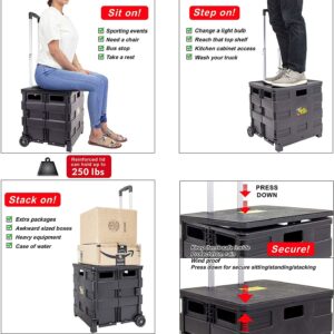 dbest products Quik Cart Collapsible Rolling Crate on Wheels for Teachers Tote Basket 80 lbs Capacity, Made from Heavy Duty Plastic Used as a Seat, Black