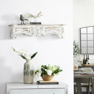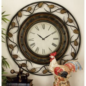 DecMode 36″ Brown Metal Leaf Medallion Wall Clock with Scrolled Vines and Floral Accents