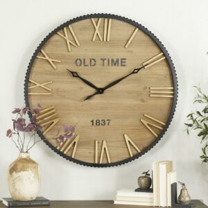 DecMode 36″ Gray Metal Cutout Wall Clock with Brown Distressing