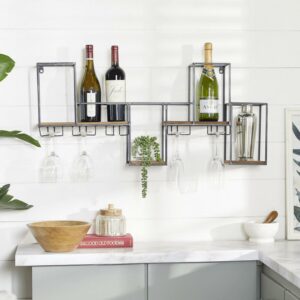 DecMode 36″ x 16″ Black Metal Geometric 7 Bottles Wall Wine Rack with 5 Glass Holder Slots, 1-Piece