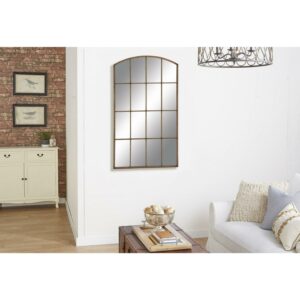 DecMode 39″ x 71″ Copper Window Pane Inspired Wall Mirror with Arched Top