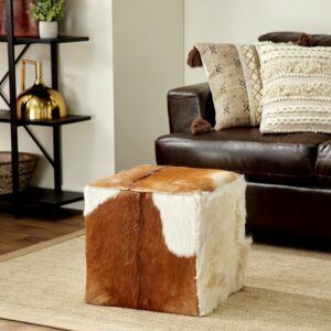 DecMode Handmade Cowhide Storage Silver Leather Decorative Box with Stitching Detail, 2 Count