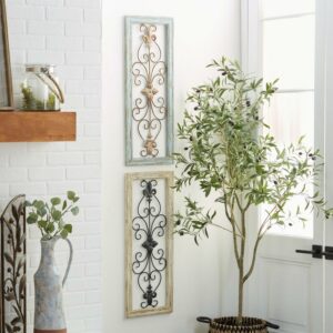 DecMode Multi Colored Wood Arabesque Scroll Wall Decor (2 Count)