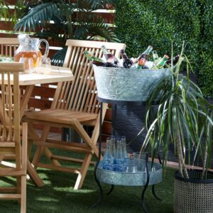 DecMode Round Metal Tall Floor Galvanized “Cheers!” Gray Ice Bucket with Lower Tray Shelf