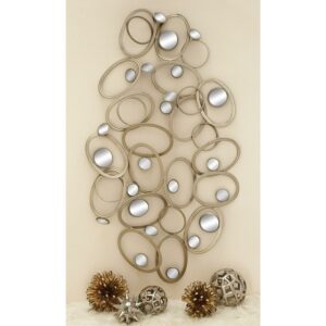DecMode Silver Metal Overlapping Oval Geometric Wall Decor with Round Mirrored Accents