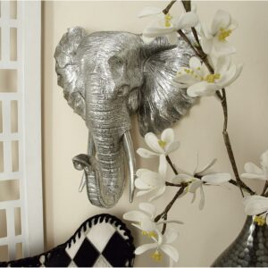 DecMode Silver Polystone Metallic Elephant Wall Decor with Tusks