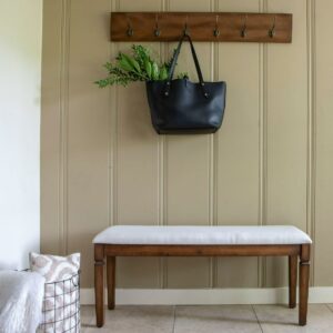 Decor Therapy Waverly Wood Bench with Coat Rack Set, 6 Hooks, 42″ Wide in Honey Nut finish