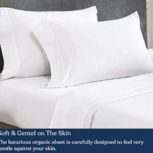 Delara 400TC Organic Cotton Twin Sheet Set, GOTS Certified, Ultra Soft Long Staple, Deep Pocket, Breathable & Silky, White