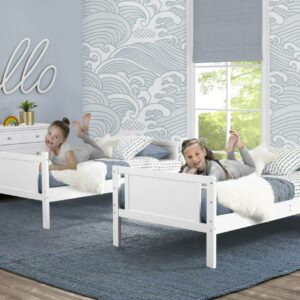 Delta Children Convertible Twin Over Twin Wood Bunk Bed with Ladder and Guardrails – Use as Bunk Bed or 2 Stand-Alone Twin Beds – Bed Ships in 2 Separate Boxes, White
