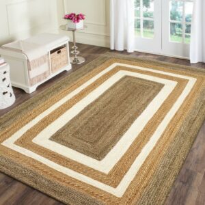 Desert Fields Cream and Natural Brown Farmhouse Color Block Organic Jute Indoor Area Rug