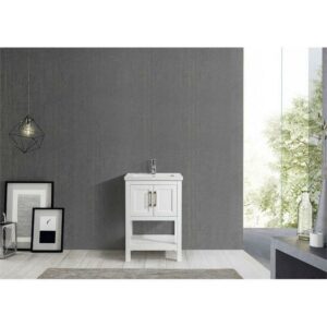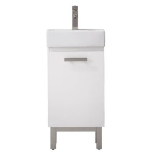 Design Element Stella 16.5” Pre-assembled Vanity Set in White with Porcelain Top – Freestanding & Wall Mount