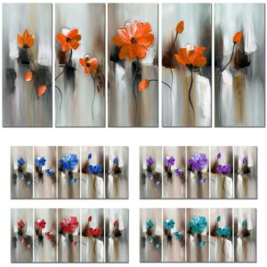Design Art Modern Flower Art, Gallery Wrapped Canvas, 5 Pieces, 60″ x 28″