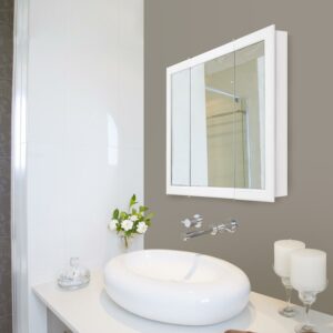 Design House 30″ Wood Wall Mounted Mirrored Tri-View Bathroom Medicine Cabinet, White