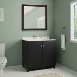 Design House 30″ Modern Wood Wall Mount Tri-View Medicine Cabinet, Espresso