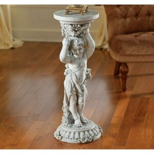 Design Toscano Sous la Vigne Sculptural Cherub Pedestal: Stone Finish