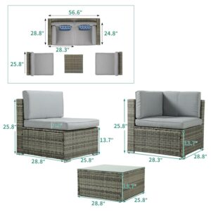 Dextrus 5 Piece Outdoor Patio Set, Wicker Sectional Sofas Rattan Conversation Set with Cushions, Pillows and Coffee Table