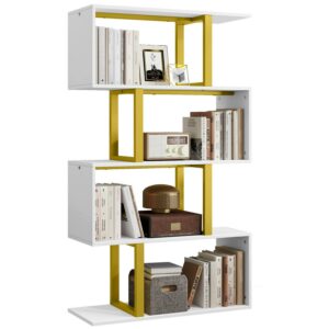 Dextrus 5-Tier S-Shape Bookshelf, Modern Wood & Metal Bookcase for Living Room, Bedroom, Home Office – Gold