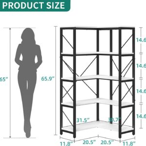 Dextrus 5-Tier L-Shaped Bookcase Storage Organizer, Tall Corner Bookshelf Open Display Freestanding Storage Corner shelf, White