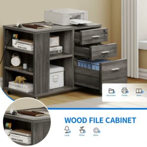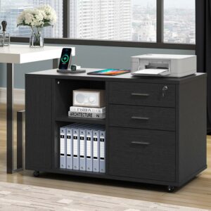 Dextrus File Cabinet with Charging Station, Mobile Lateral Filing Cabinet with Lock for Office,Black