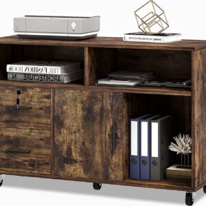 Dextrus File Cabinet with 2 Drawers, Printer Stand with Storage Shelves, Large Mobile Filing Cabinet, Functional Wood Cabinet for Home Office , Rustic Brown