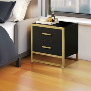 Dextrus Mid-Century Modern Nightstand Set of 2 End Side Table with 2 Drawers for Bedroom Living Room, Black