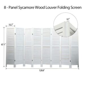 8 Panel Home Office Room Dividers, 5.6 Ft Tall Folding Wood Louvered Privacy Screen, White