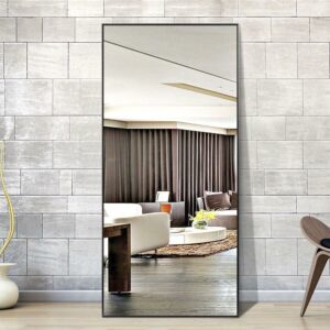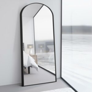 71″x31″ Aluminum Alloy Full-length Mirror Arch Decorative Mirror with Bracket Black