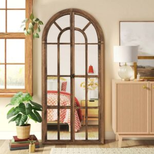 71″x32″ Modern Arched Foldable Window Mirror Full Length Mirror Floor Mirror,Browen