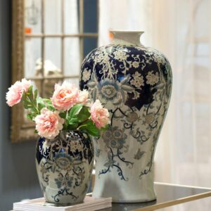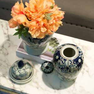 A&B Home 17″ Tall Porcelain Vase with Lid Ceramic Blue and White Floral Print Ginger Jar Display Storage Asian Decor Centerpiece