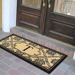A1HC Natural Coir and Rubber Paisley Hand-Flocked Monogrammed Doormat, 30″x60″, Durable Low Profile Heavy Duty Outdoor Front Door Mat, Black